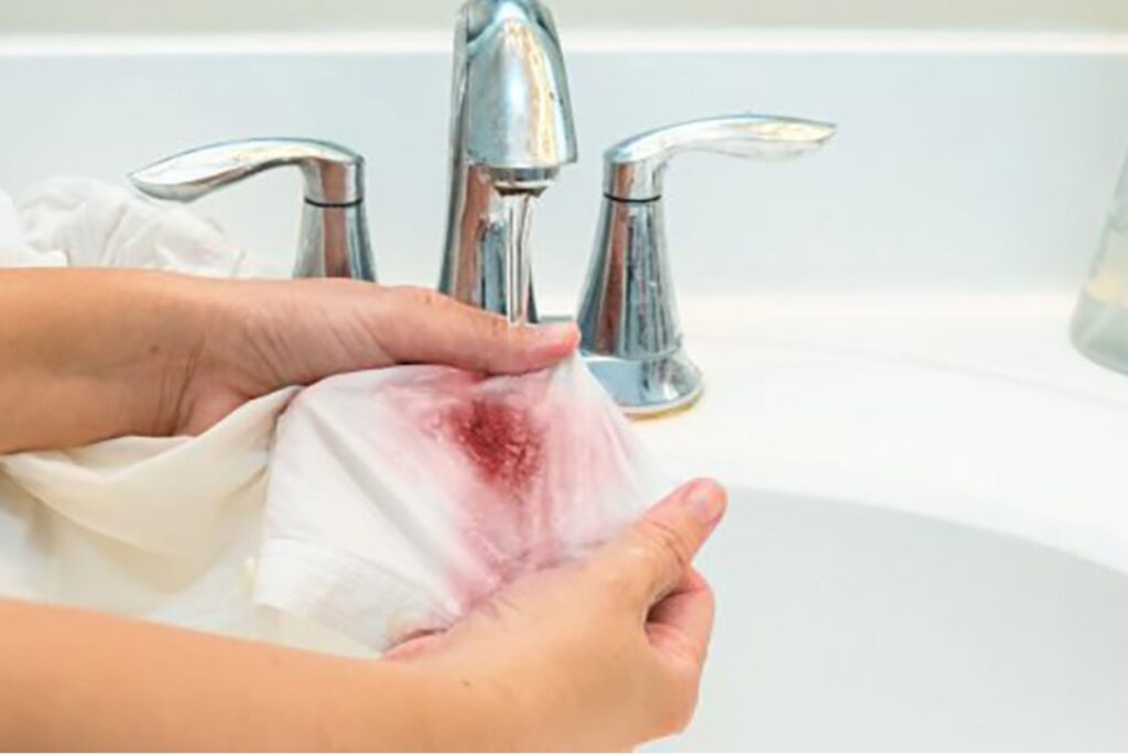 Следует выдавить сок лимона и смочить им окрасившуюся ткань. Прогладить проблемное место утюгом, накрыв пятно марлей. Затем постирать вещь.